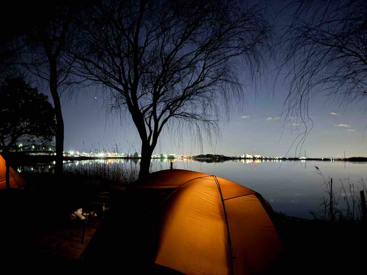手持ちの酒も呑み終わり、焚き火も終わり(持って来た薪が終わった)、歯を磨いてトイレ行って寝ますか……の時の写真。星空も綺麗だったよ。そしてそのまま酔い潰れて就寝……