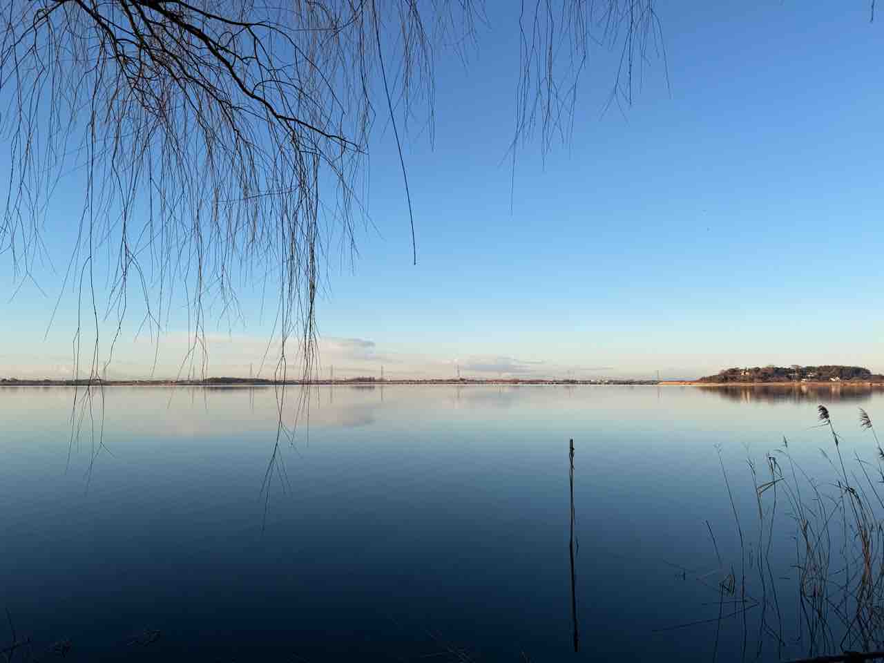 朝の牛久沼! 風もほとんど無いけど、氷点下なので寒いのは寒い。でも空気が澄んでいてとても気持ち良い(寒いけど)。