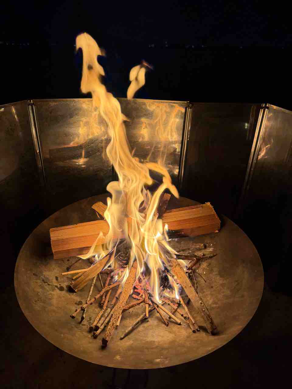 焚き火! 今回、樹を切り倒したばかりで枝とか持って行って!と管理人さんのご厚意で枝をごっそり貰ってきたのでそれで焚き火した。幾ら枝の先の方は乾いてるからといっても、焚き火をすれば爆ぜる。結構バチバチ爆ぜたので、慌てて周りに水撒いて火の粉からの火事を予防しつつ、私もチェアを少し遠ざけて被害を受けないように。最終的には車に残っていた薪も追加したんだけどね。やっぱり薪屋で買う薪は安定して燃えるし良いな。やっぱり薪はいつもの薪屋さんの薪を大事にしていこう。取り敢えず全部使い切ったからまた買いに行かねば。