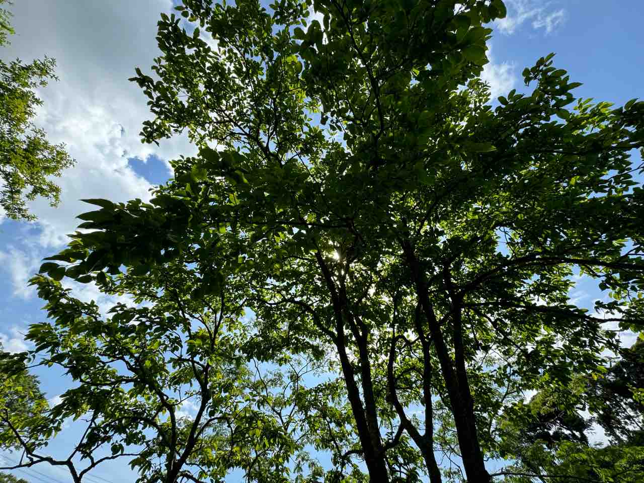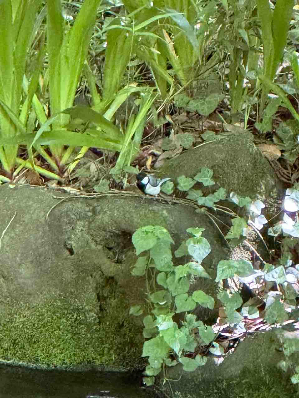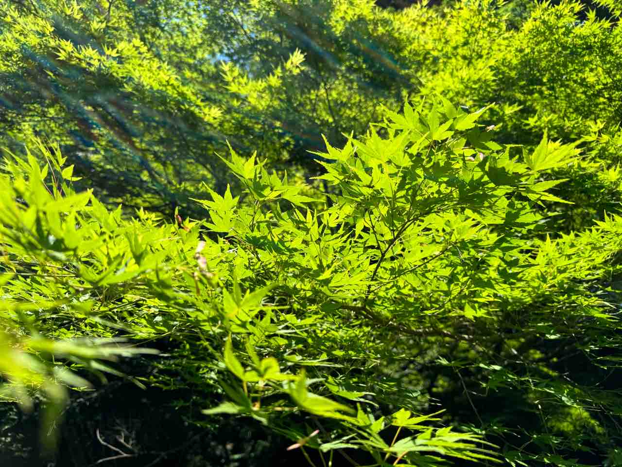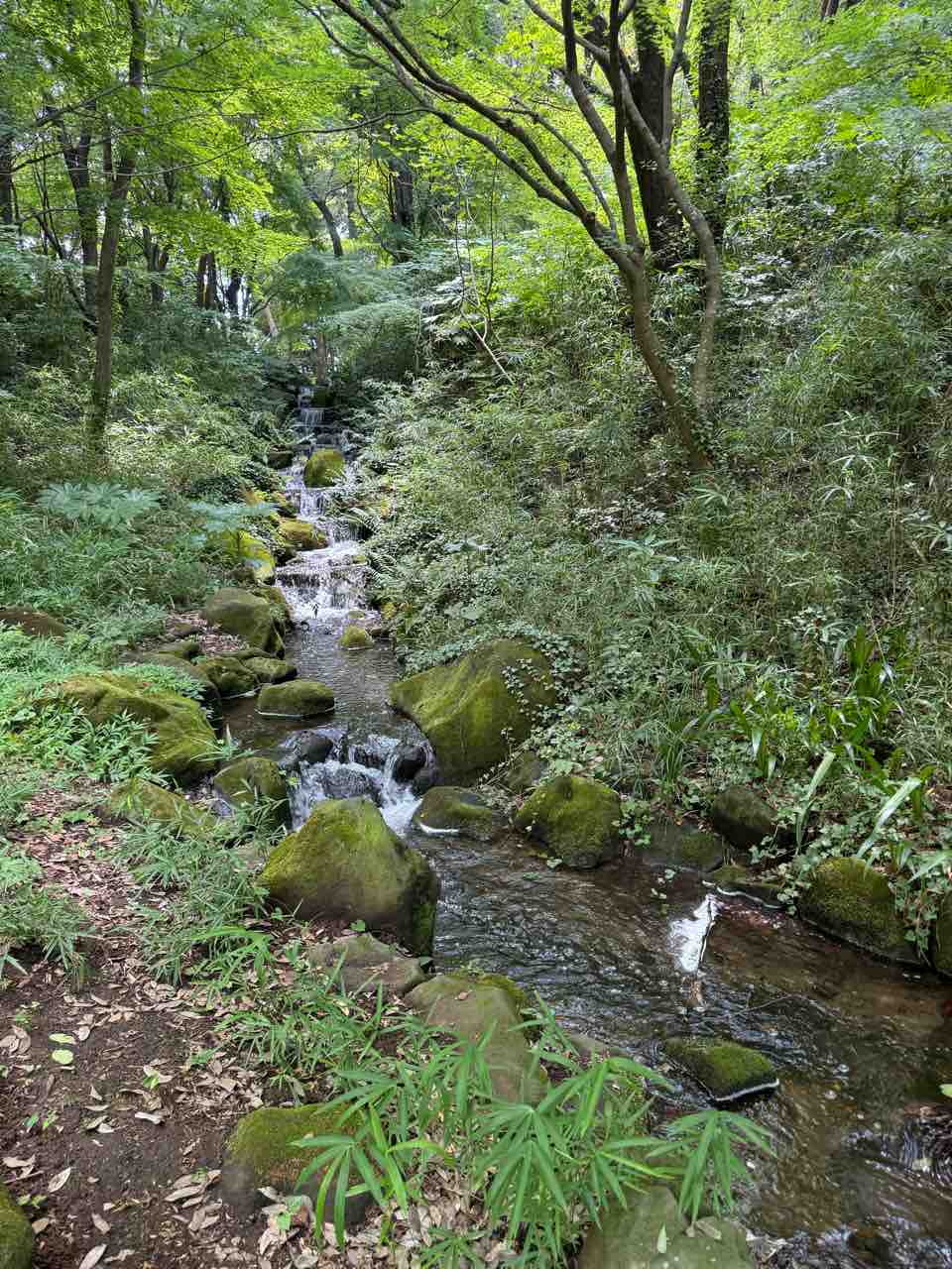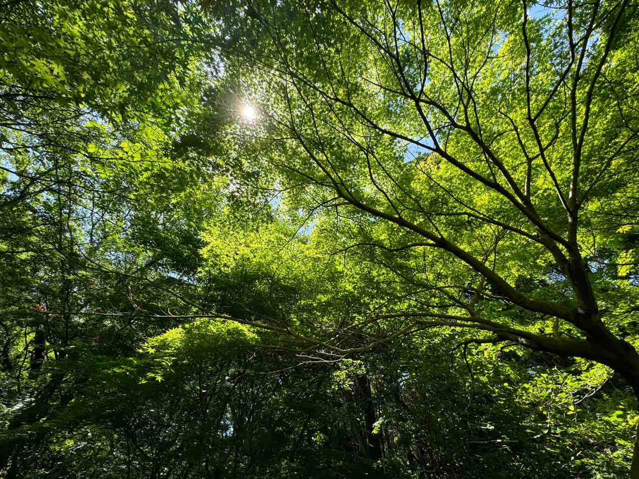 見上げれば緑。この場所、本当に良いよ。木陰で涼しくて、ミニ渓流があって、癒やしで一杯だよ。iPadで漫画読んでるだけなら家でエアコンかけての方が涼しくて良いんだろうけど、敢えてこうやって自然の中にいるってのが良いのよ。