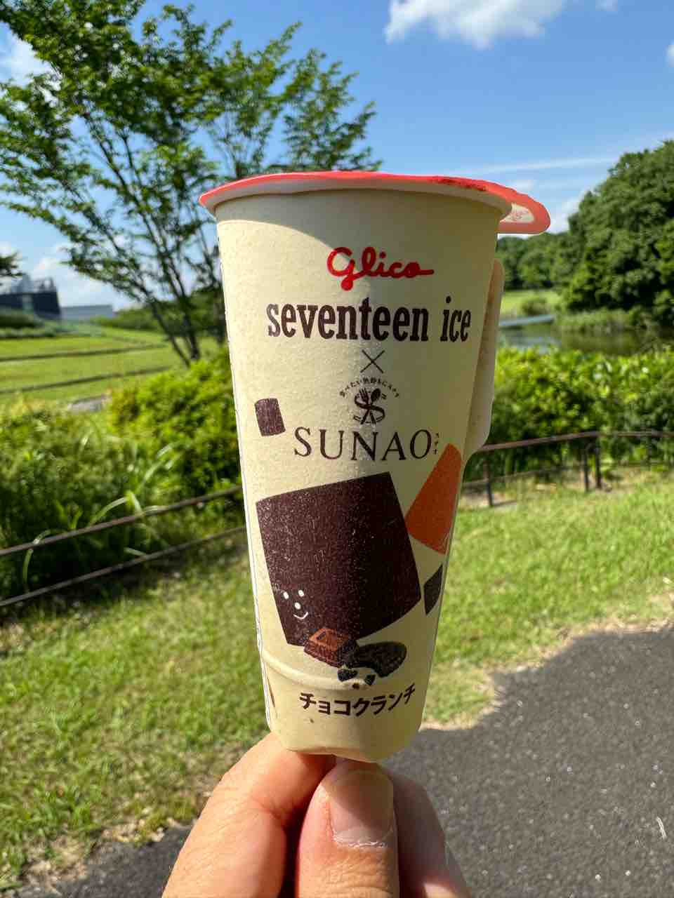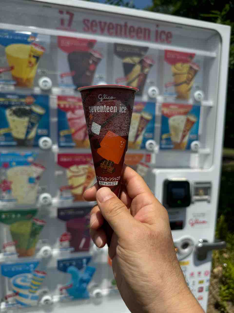 最後は暑い時恒例のセブンティーンアイス。チョコ大好き。今日はアイス自販機の横のゴミ箱(アイス専用)が満杯になってた。暑かったから売上良かったんだろうな。