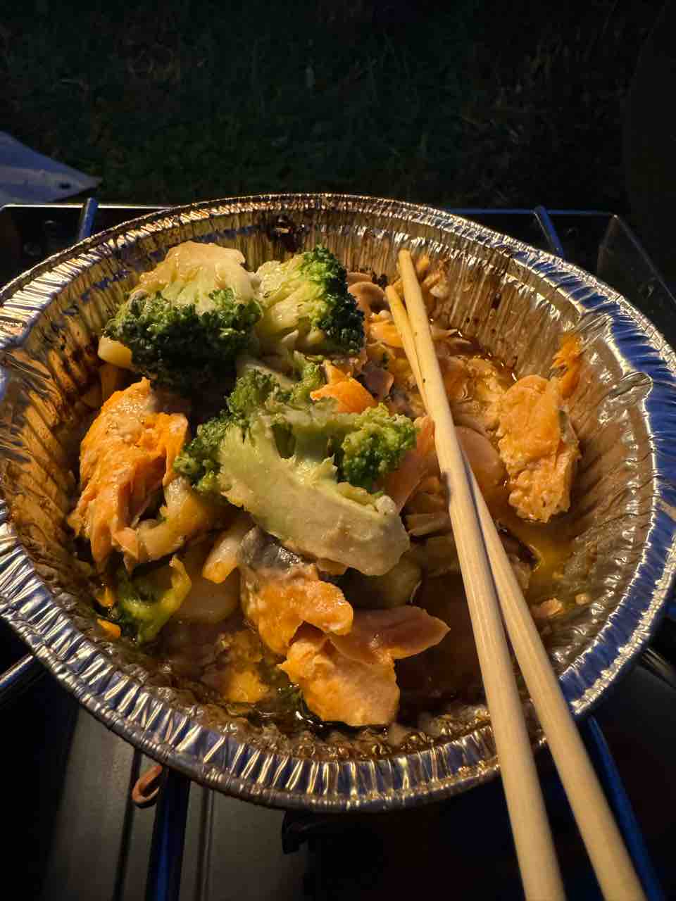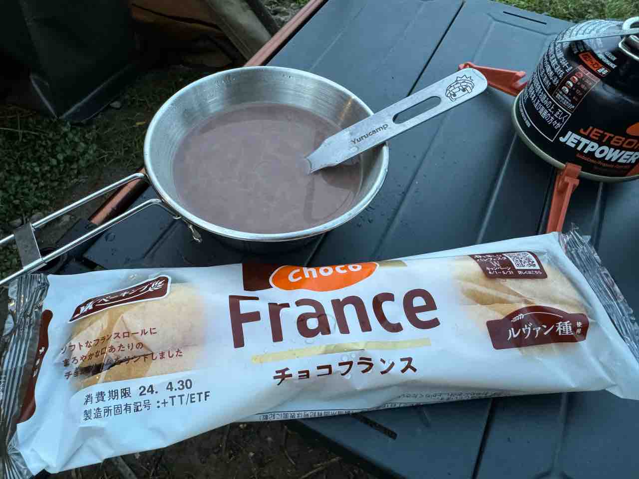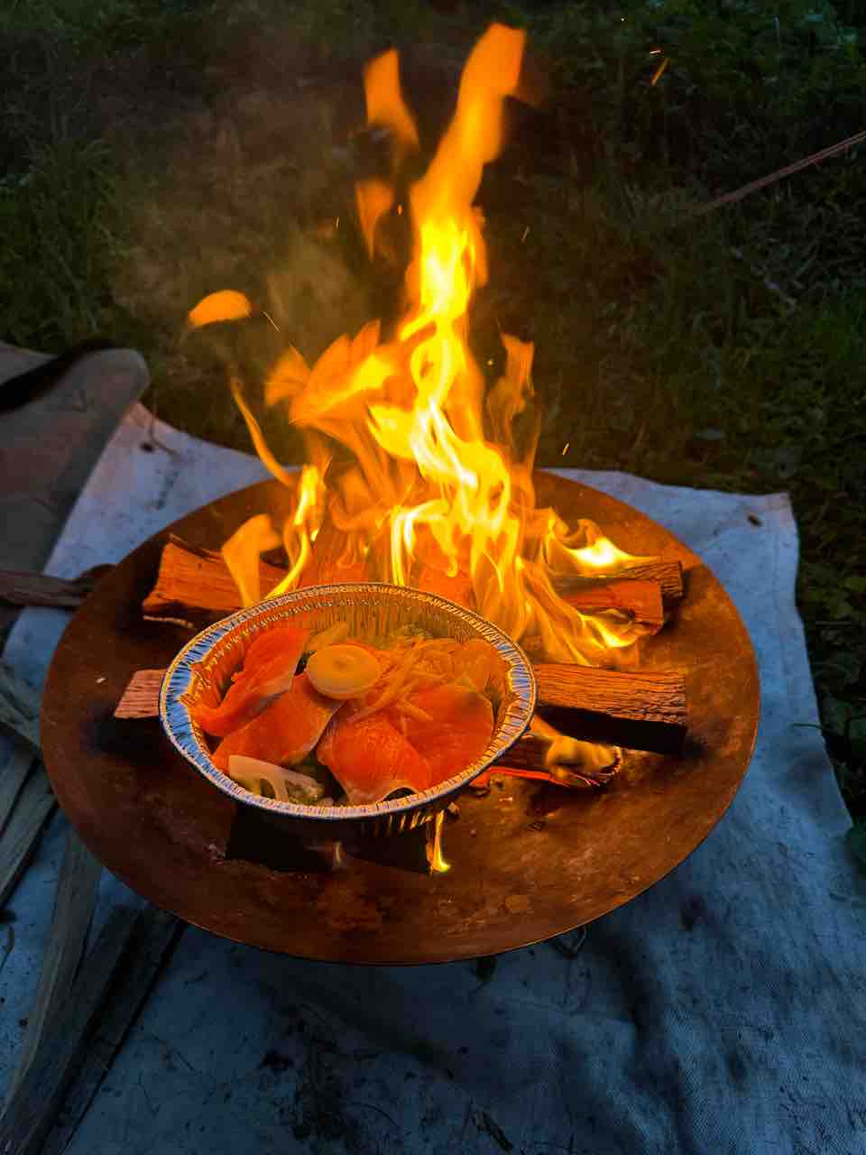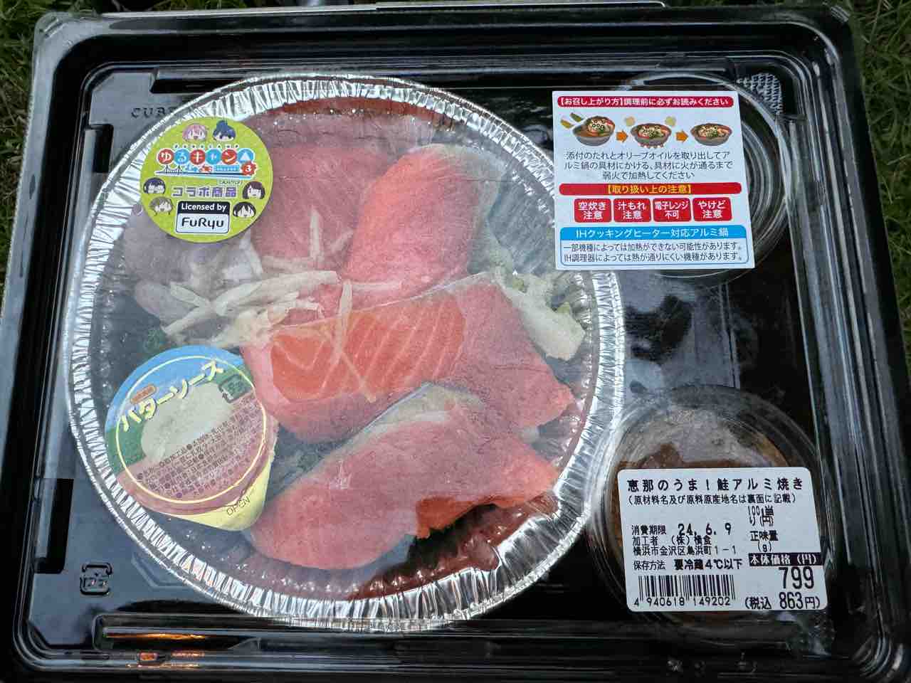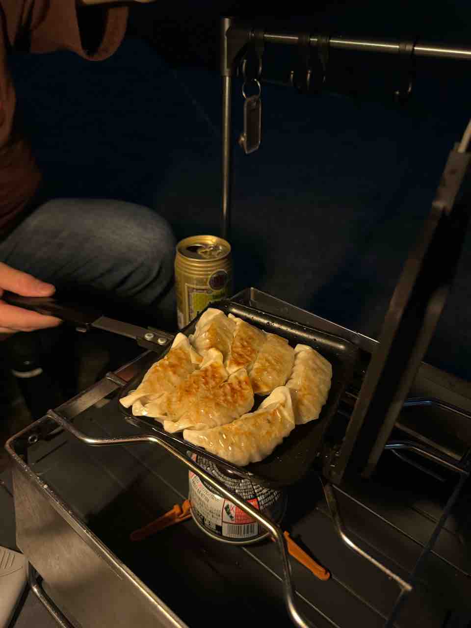 とはいえ、10時頃にブランチを食べたっきりなので腹も減る。今回は簡単に美味しく食べれる料理をしようと思って持って来てたが風が強くてバーナーが使えず諦めてたんだよね。でも風が収まって、これならいけそう!という事で作った。