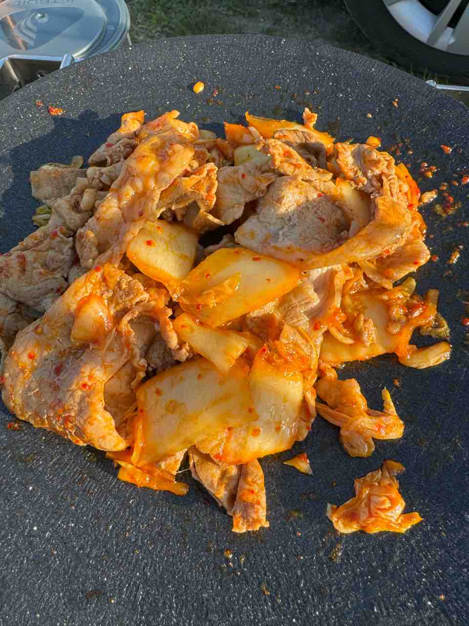 更に冷凍のキムチ炒飯。ひたすら辛いものを食べて酒呑んでる流れ(笑)。結局、500ml酎ハイを5本飲むといういつもの流れ。でも、ちょっと酔ったなぁ。色々と親子で対話するのにキャンプって良いかもしれない。しかも今回はプライベートサイトだったので他の人の声も全くしないし。22時からクワイエットタイムなのに、気づいたら23時だった……いかんいかん。
