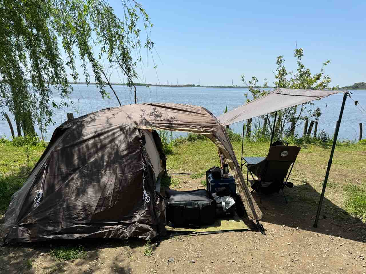 一ヶ月ぶりに設営したら、手順忘れてた……でもまあ、何とか無事に設営。あまりにも暑いから、テントの前室は3方向とも全開にした。早く酒呑みたいんだけど、設営終わるまでは飲まないことにしてるんだよね。忘れ物した時に最悪車で買い出しに行けるようにって思ってるから。まあ、今回はゴミ箱忘れてきちゃったんだけどね。これはゴミ袋で代替できるからもう良いやってことで。