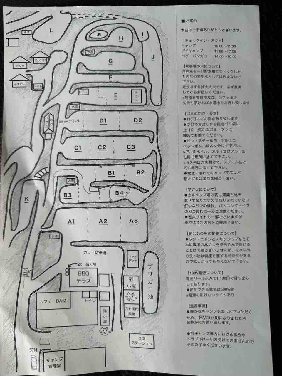 この下の方にMAPがあるんだけど、いちごハウスの右側の立入禁止区域が今回泊まったサイト。ここはプライベートサイトってことで、他の人がいない場所。