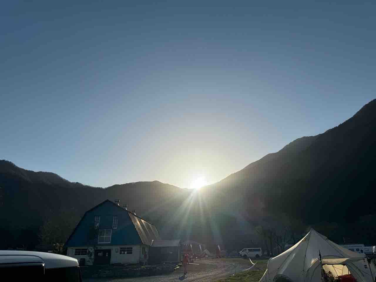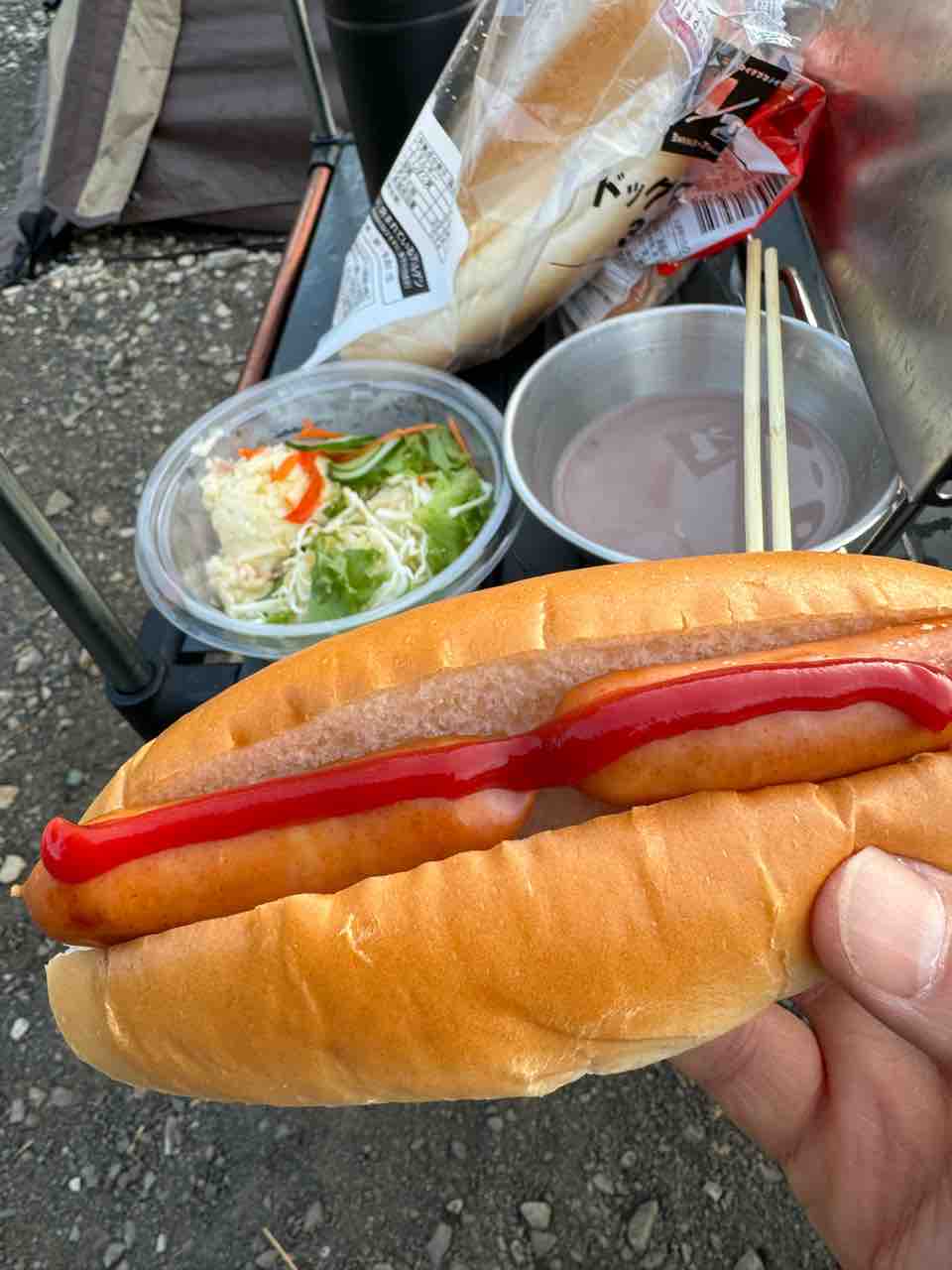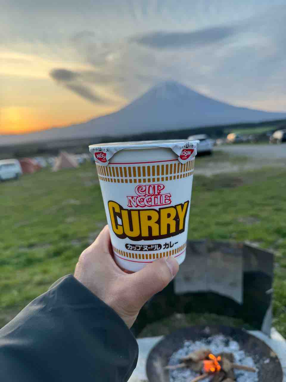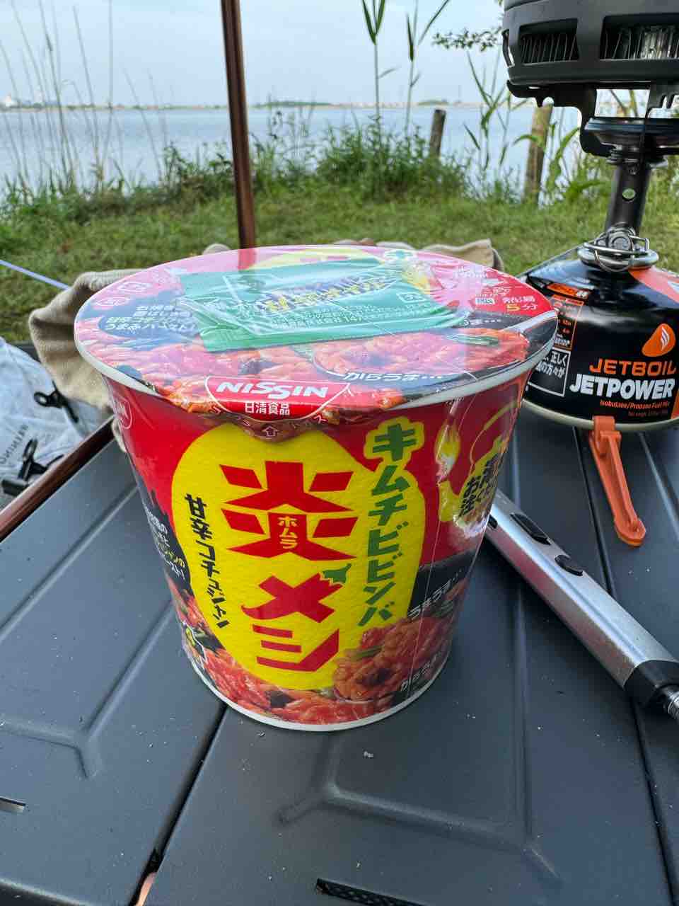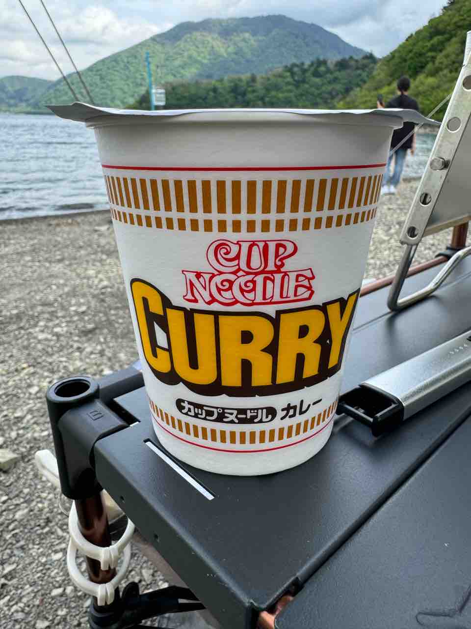 戻って朝飯。本当は着いたらすぐに食べるつもりだったカレー麺。ゆるキャン△好きとしてお約束はやっておかなくてはいけないかと(笑)。食べ終わってからは、少し片付けとかしつつ……日が昇ってくると一気に暑くなって、気づけばTシャツになってた。本当に寒暖差が酷かった。