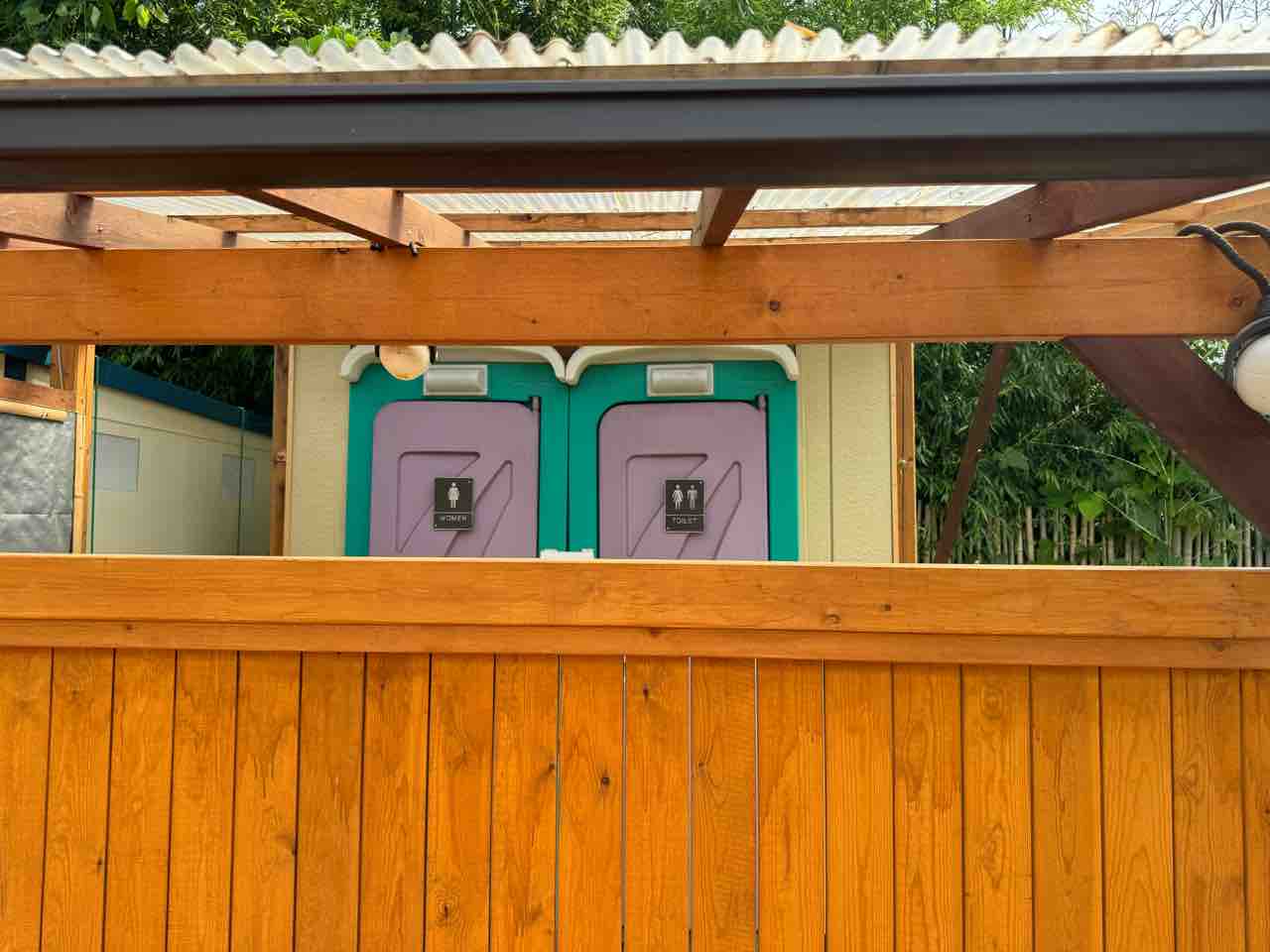 トイレ。水洗トイレで、男女共用と女性用が一つずつ。スリッパに履き替えて使うタイプなので、汚れにくくて良いと思う。ドロドロになってる床とか嫌だしね。