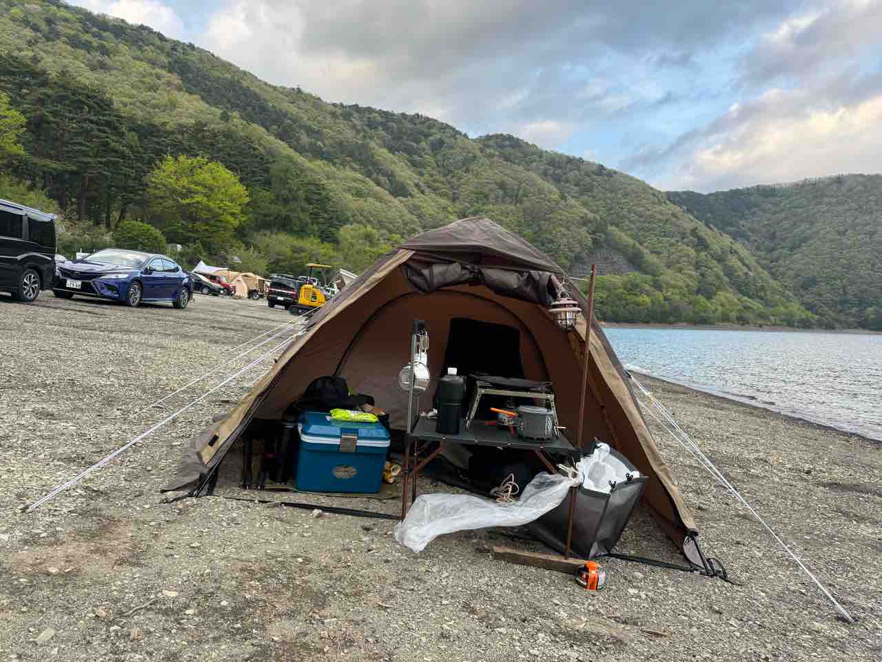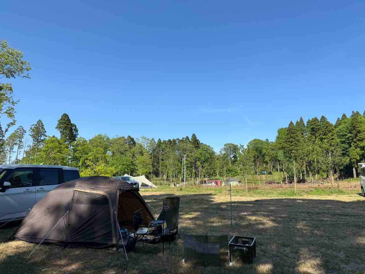 14時チェックアウトだからのんびりしようと思えばできたんだけど、諸事情があって早めに撤収する事に(諸事情については別で書く予定)。ああ、でも帰るのかぁと思うと非常に名残惜しい。朝の自分のサイト状況を一枚写真に収めて、撤収へ。風が強くて荷物はほとんど車の中に入れていたし、ある程度早めに撤収出来た。
