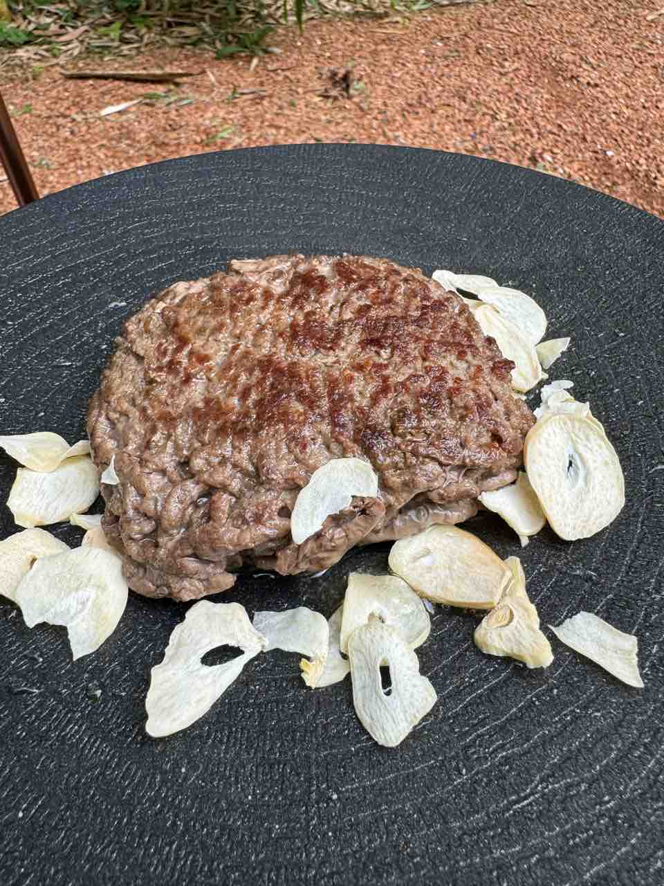 両面焼いてガーリックチップ乗せてヒキニクソノママヤイターノできあがり!