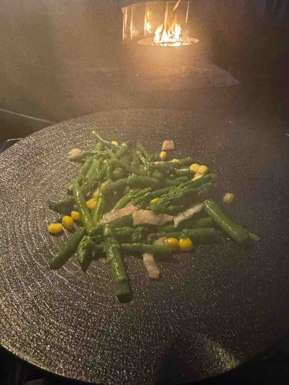 これも冷凍のアスパラベーコン。3回に分けてちまちま焼いては食べてた。ほりにし赤かけて食べて、これまた辛くて酒の肴にもってこい(笑)。