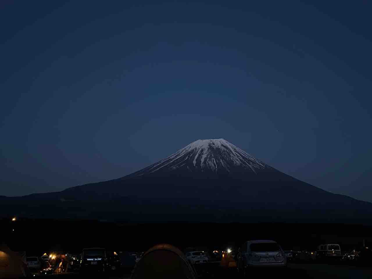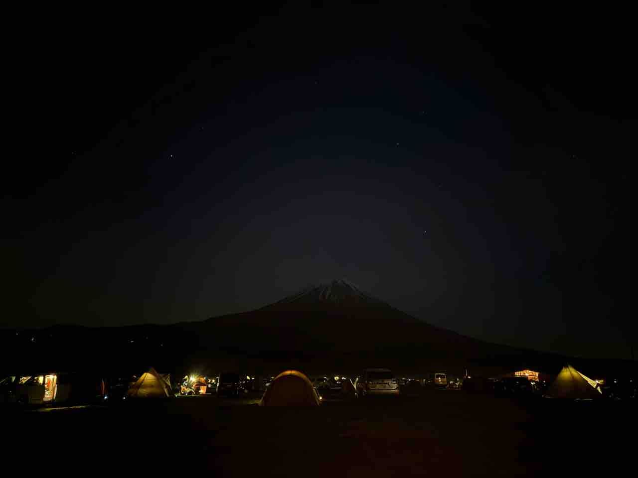 そして遂に真っ暗に。富士山は輪郭だけに。でも存在感が凄い。焚き火をしながら酒を呑んで……良いねぇ。
