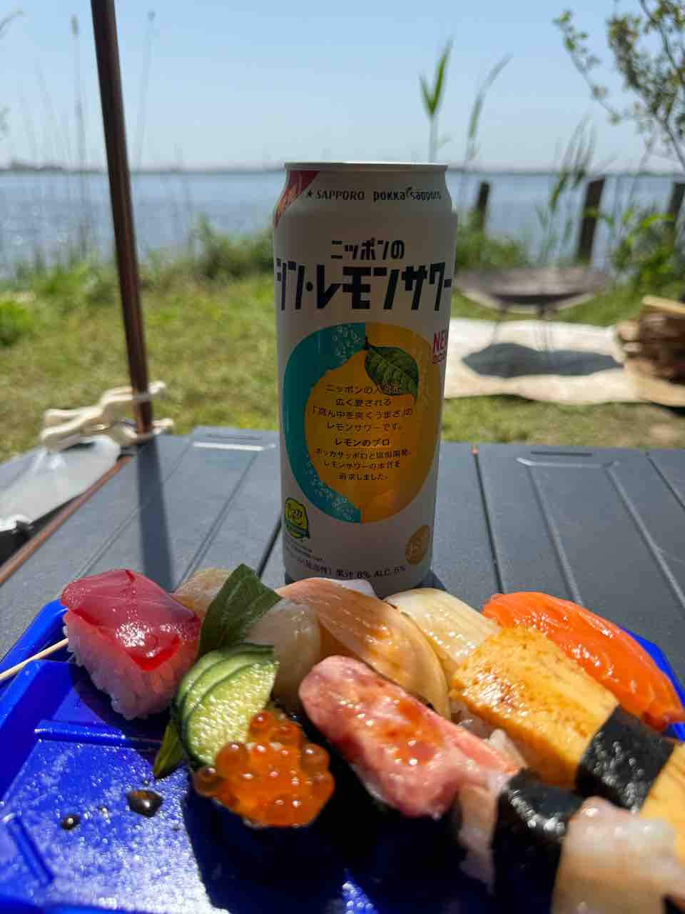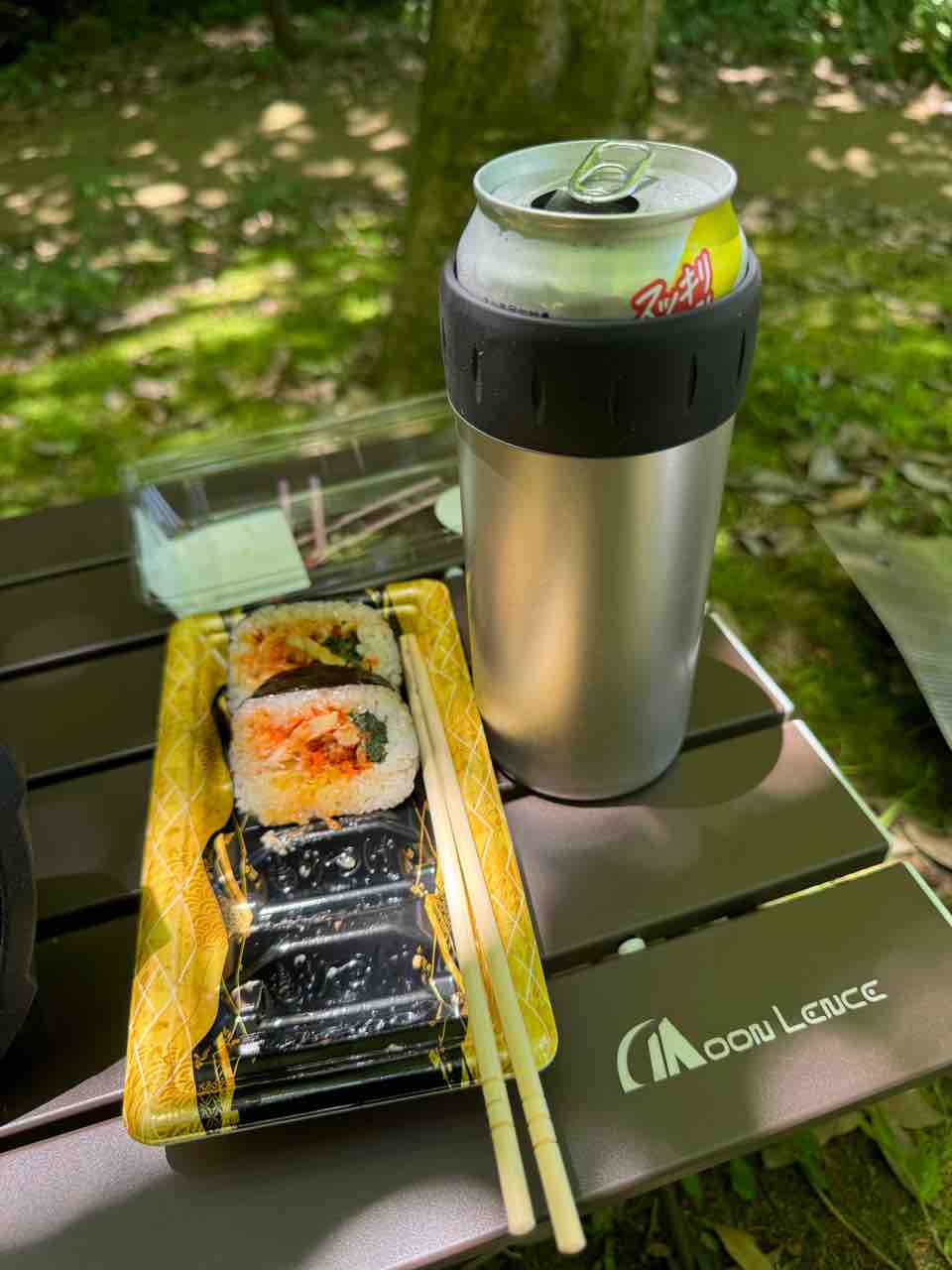 もうね、暑くて汗だくになってる訳ですよ。それでテントとか設営して更に汗だくな訳ですよ。しっかり冷やした酎ハイが美味い! 1本目はいつもあっという間に消える。もう、あれは設営に使った気力体力水分を補う為に必要な一本なんだよ(笑)。