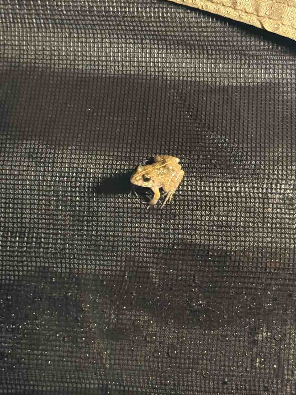 ふと見るとテントに小さなカエルが乗ってるし(笑)。