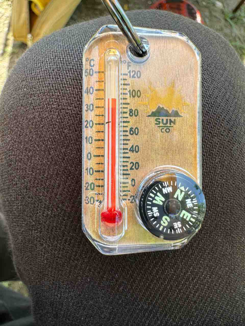 でも、焚き火も用意した薪が終わって終了。この日は昼は25度ぐらいあったのに夜が10度ぐらいまで下がったから、寒暖差が激しくてとても寒く感じた。冬は最高気温が10度とかでやって平気だったのに、昼がTシャツ一枚、夜はダウンを着ても寒いって事で体がついていけなかったんだな。でもまあ、電気毛布も持って来ていたし、それを追加して就寝。