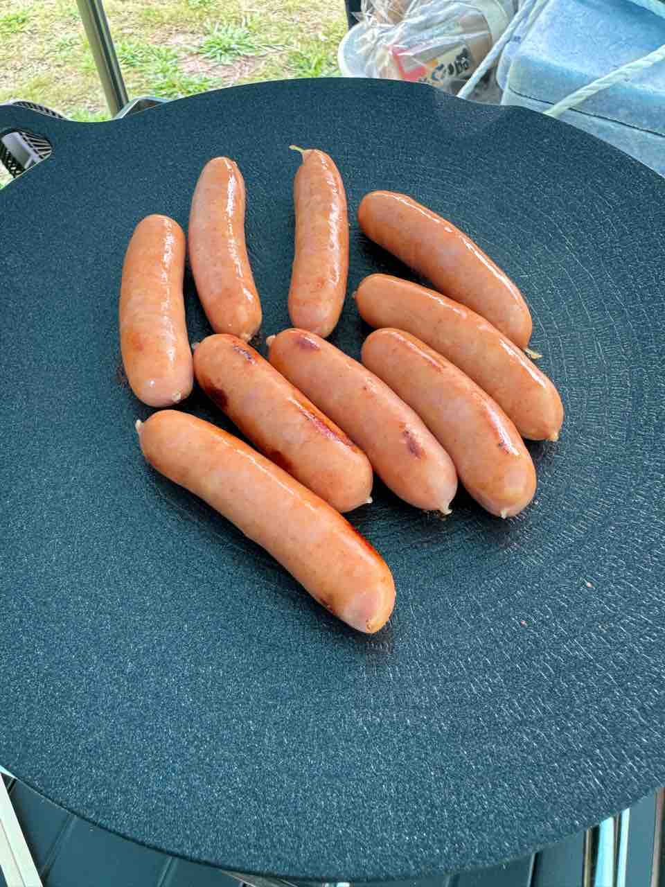 そして更に肉も焼いちゃう。巻物・ウインナー・肉……いつもの流れだなぁ。こんな緩い感じで酒呑みながら食べて、色々学校の話を聞いたりして、iPadを出す暇も無いぐらい話をしてたなぁ。