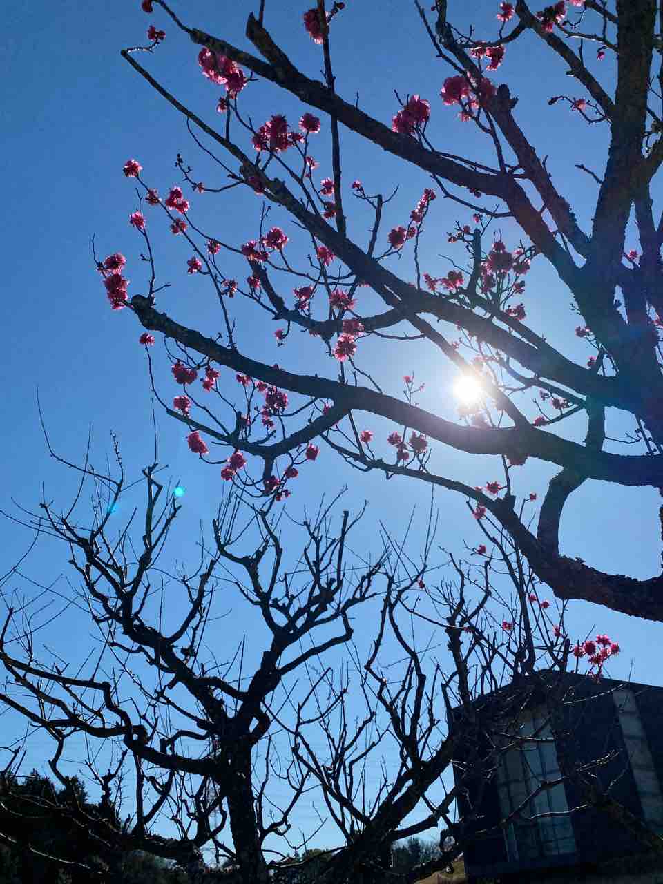酎ハイ2本飲み終わる頃にトイレ行って、自販機で暖かい焙じ茶を買ってきて、更にのんびりしてた。だって、上を見れば梅と雲一つ無い空があって、前方を向けばススキとその向こうに池があって太陽の光でキラキラしてる。のんびりしたくなるよ。