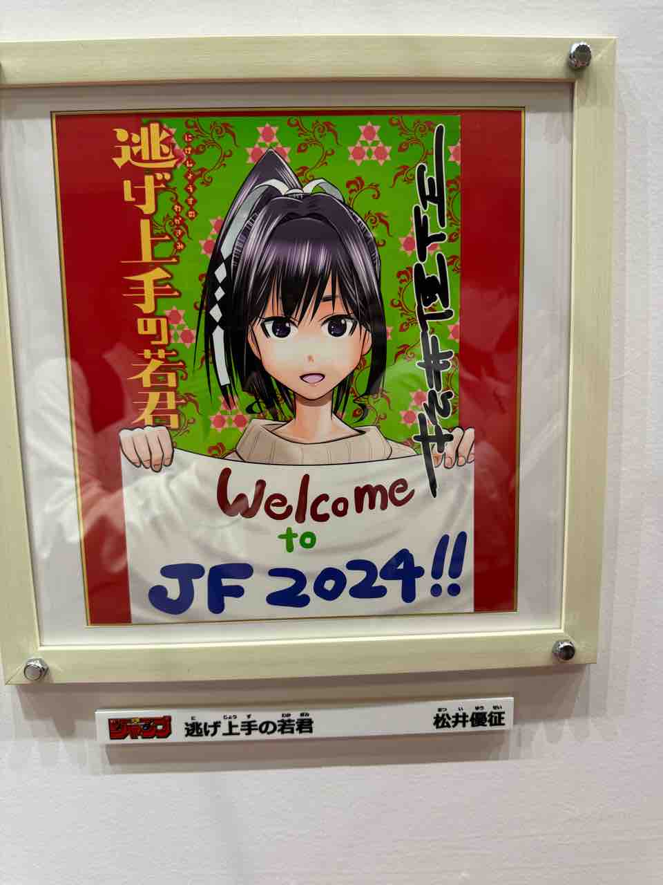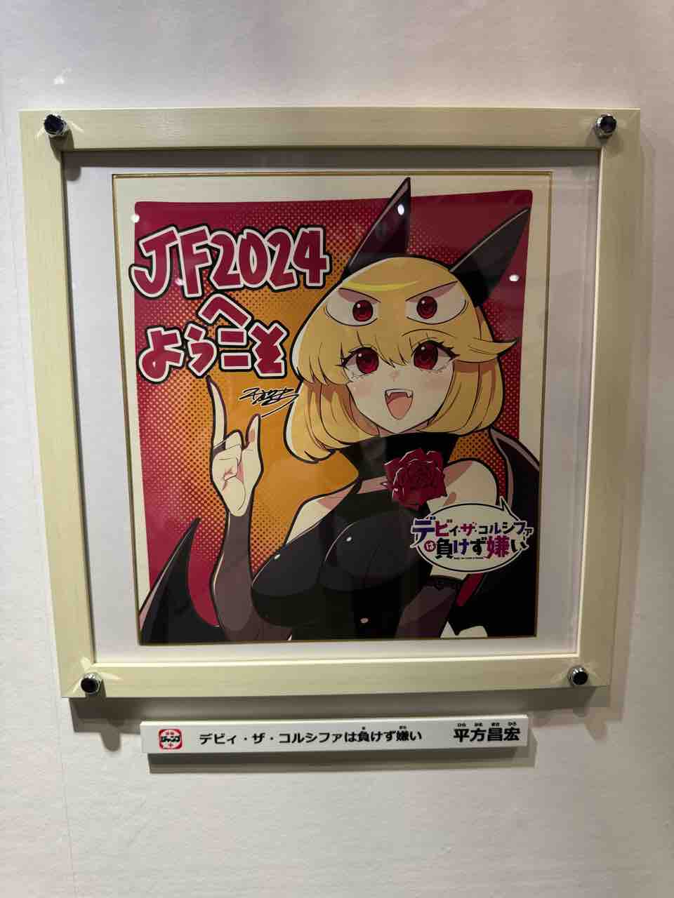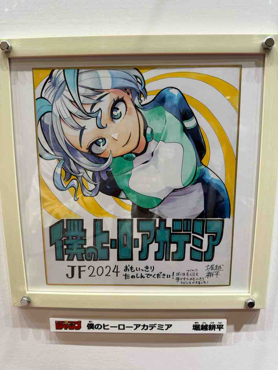 何とか会場に入って、最初に行ったのは、色紙・原画コーナー。原画コーナーはこれまた整理券式になっていて無理。でも色紙は自由に見れたので、好きな漫画家さんの漫画色紙は写真撮ってきた。