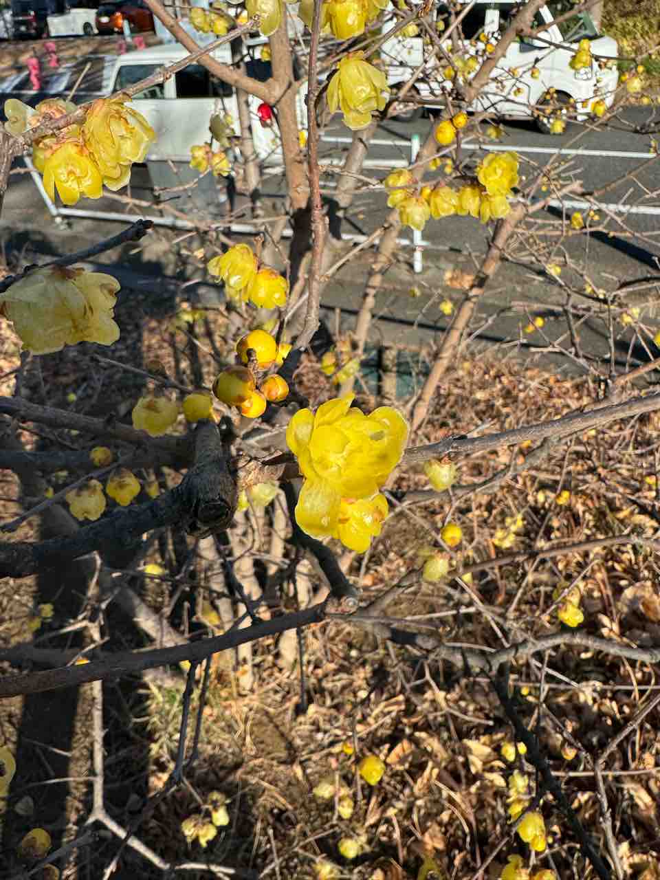 まだ1月なんだけど、もう春が近いのかなって思ってしまった。この黄色い方はソシンロウバイって名前らしいんだけど、匂いがなかなか強い。近くを通ると匂いがする。でもそういう匂いって冬はあまりしないから、春かなって勘違いしそうになる。