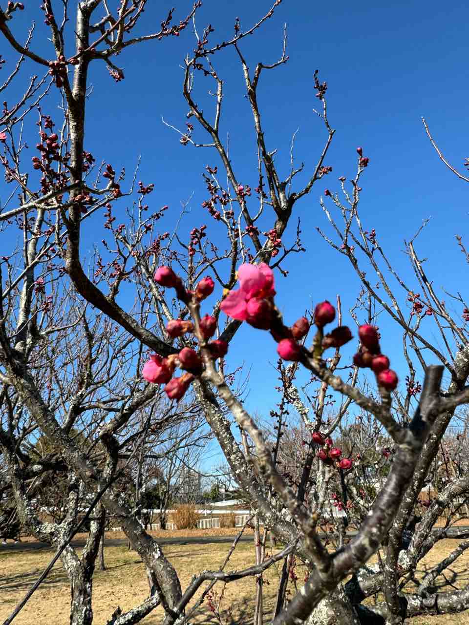 この公園、季節の花が楽しめるようになっていて、今日は既に梅が咲き始めていた。
