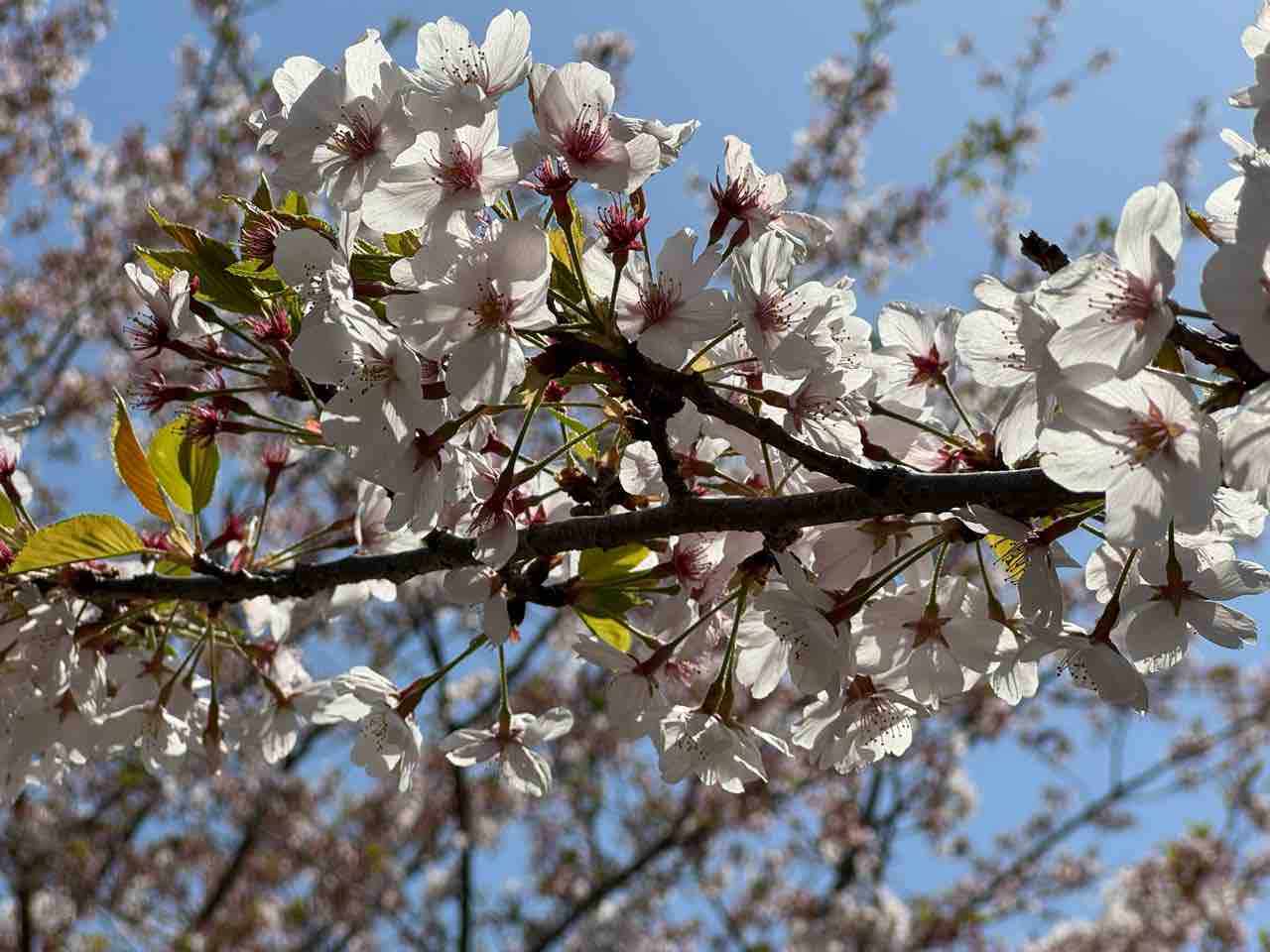 テクテクと公園に歩いて行くと、流石に満開からは過ぎ始めていて徐々に桜が散り始めている状態だった。でもまだまだ綺麗。