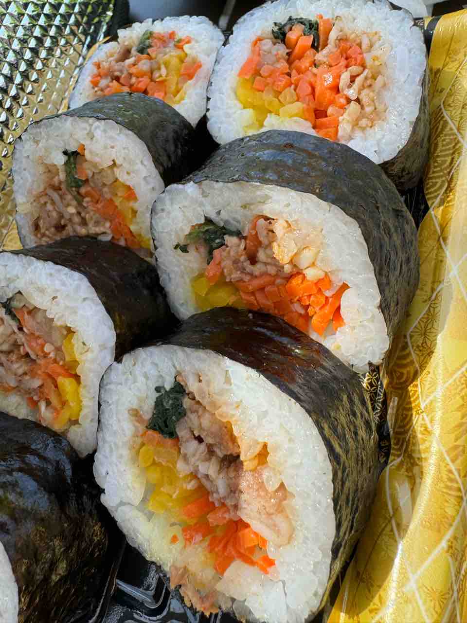 ちょいとツマミに、というか昼飯かな。スーパーで買ってきたキンパ風の巻物。初めて買ったんだけど、ちょい辛でなかなか美味かった。