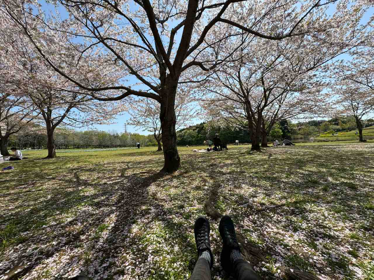 自分のチェアに戻って、酎ハイ3本目を飲み干して……って時点でもう5時間近くいたな。天気が良い日に、綺麗な桜の下で半日過ごせる幸せ。近くにこんなに大きくて綺麗な公園があって良かった。行く度に思うよ。