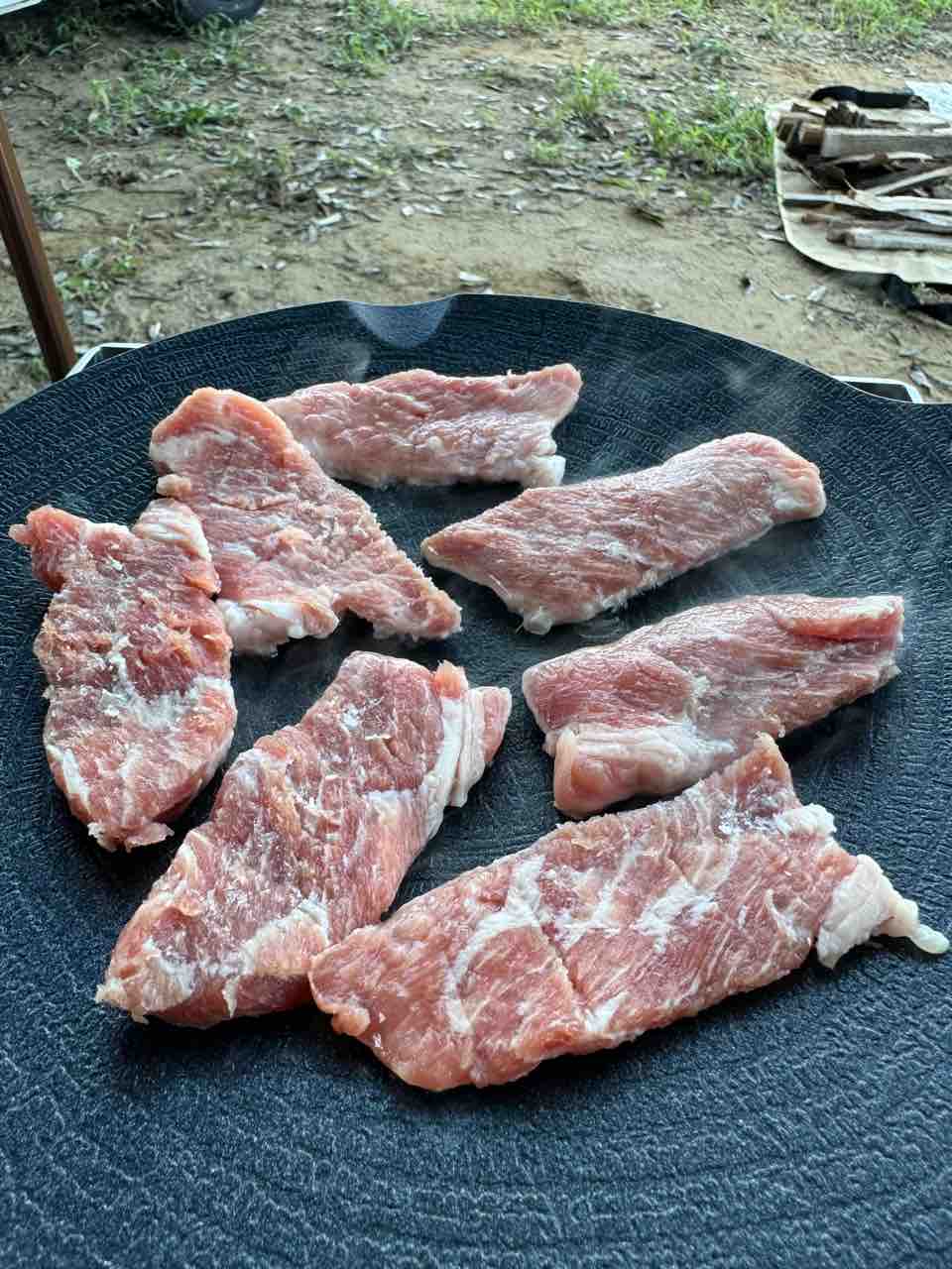 のんびり静かな空間でiPadで漫画や小説読みながら過ごす時間はとても良い。ちょこちょこブルスコにも投稿しつつ、だらだら過ごすこの心地良い時間……とはいえ、夕方になってきて腹が空いてきたので、肉を焼く。