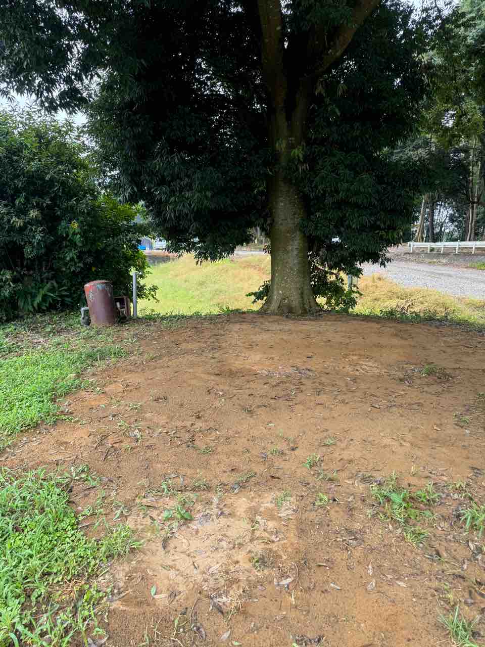 サイトを少し離れた所から見るとこんな感じ。大きな木の下にテントを設営してる。車ですらこのサイズ。ちなみにこのサイトに車で上がってるけど、結構ギリギリだった。大型車だと無理だと思う。小型車で良かった……けど、結構ヒヤヒヤしながら車置いたからね。少し高台になってるから、踏み外したら車が転げ墜ちるのは確定してるので……