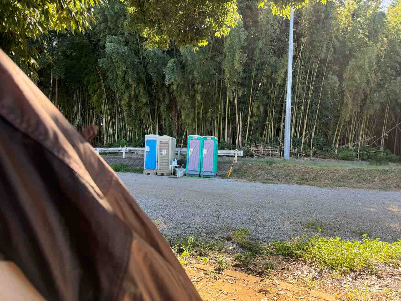 朝から腹具合悪くて、移動中にコンビニでトイレに寄るぐらいだったのでやや不安だったんだけど……無事到着、チェックインして設営へ。
