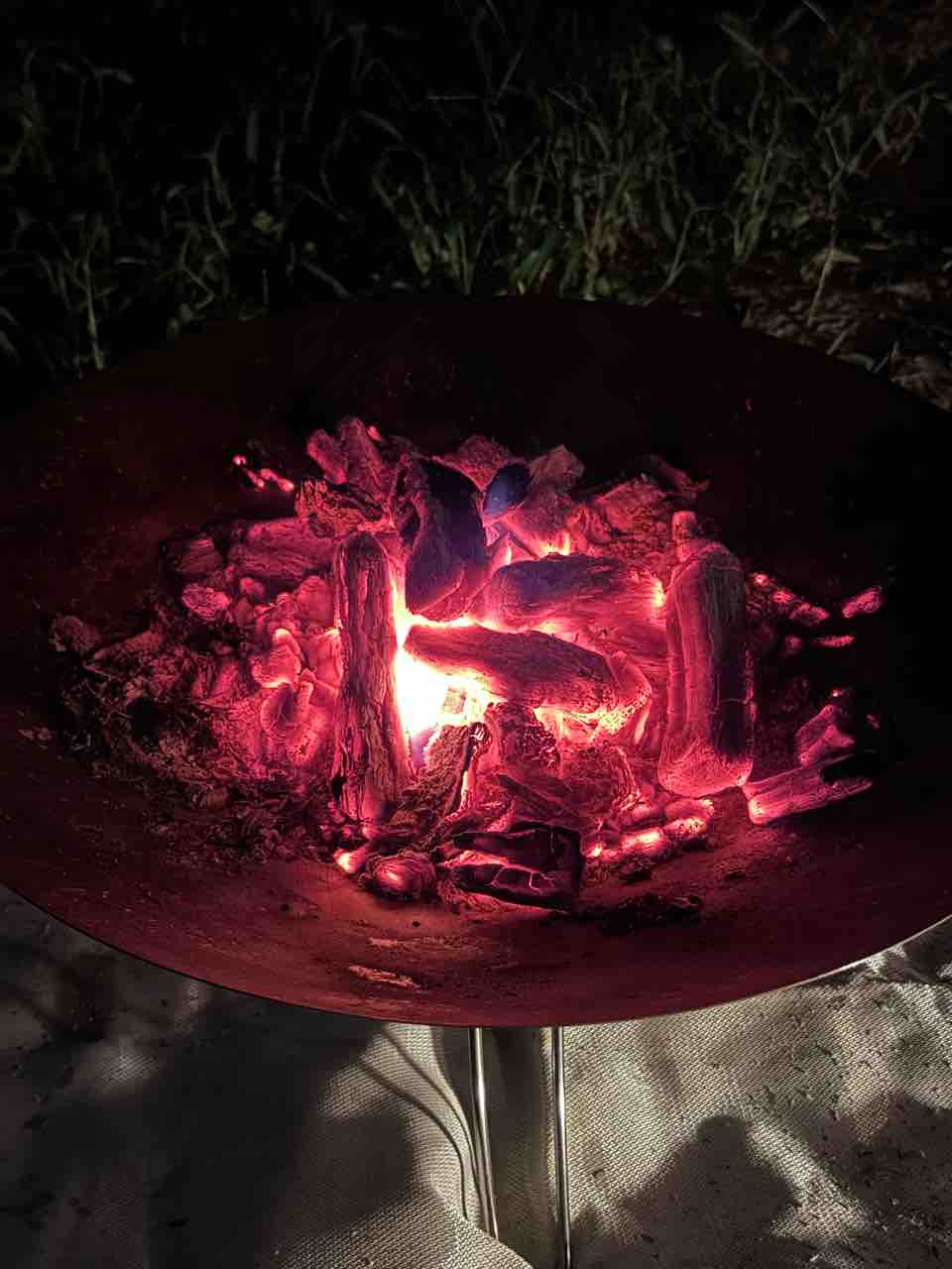 あまり多くの薪を投入しなかったので、早めに焚き火も終了。この仄かに赤い火を見ているのも悪くない。