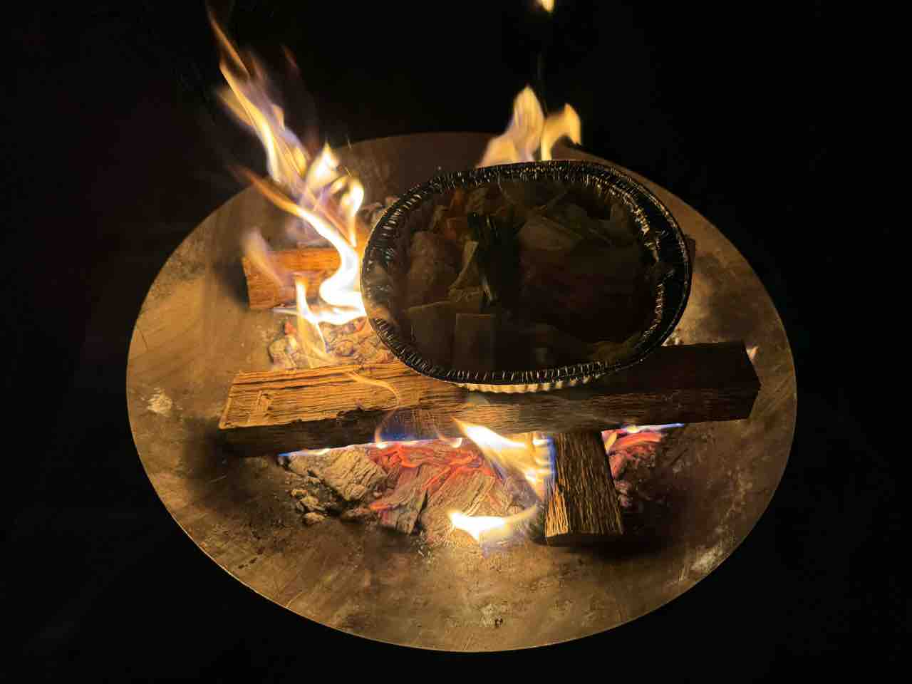 まあ、置く時は良かったけど、その後で鍋を降ろそうにも熱くて大変だったんだが、なんかキャンプっぽいことができたので悔いは無い(笑)。