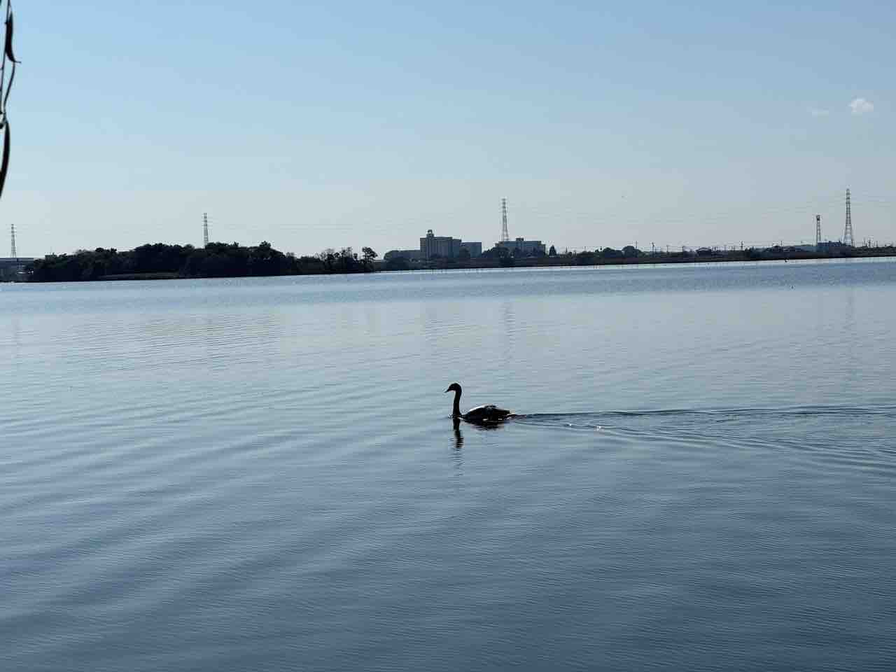 設営しようとしつつふと見たら白鳥がいる! 相変わらず普通にいるな、ここ。